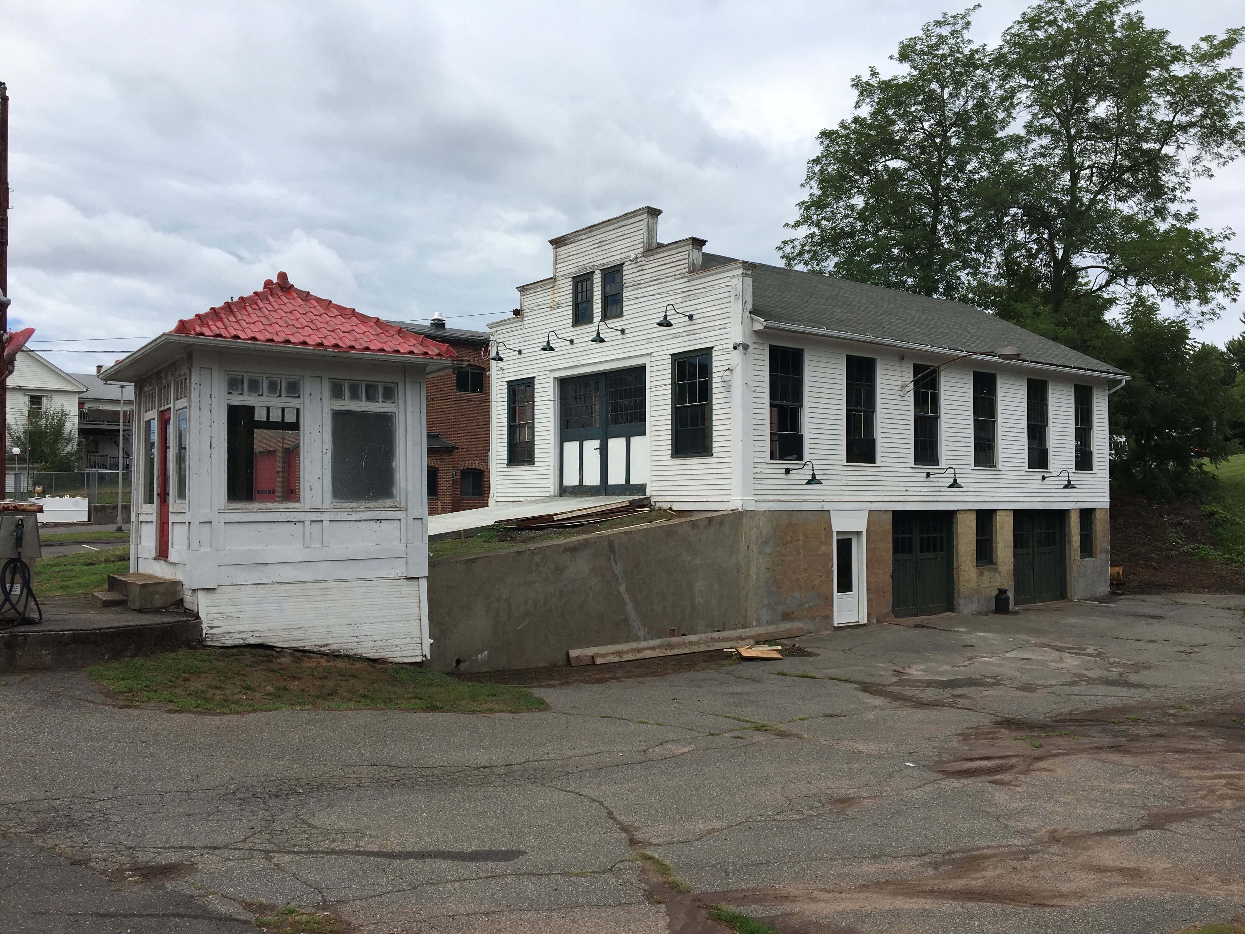 The Broad Brook Garage was built in 1918, right as American car ownership took off, followed shortly after by the iconic red-tile-roofed pump shack, with 2 gas filling pumps out front. Originally built by The Broad Brook Company for the village, with its first owner and operator, Frank Kirchof, the Garage was buzzing with buggy and car repairs from day one. A few years later, new cars began showing up in the lot, namely new Buicks. Thanks to Mr. Kirchof, the Village now had its first new car dealership, selling & repairing new Buicks as well asused cars of all makes and models. Photo: Broad Brook Garage, circa 1919. To the left is Broad Brook Grammar School