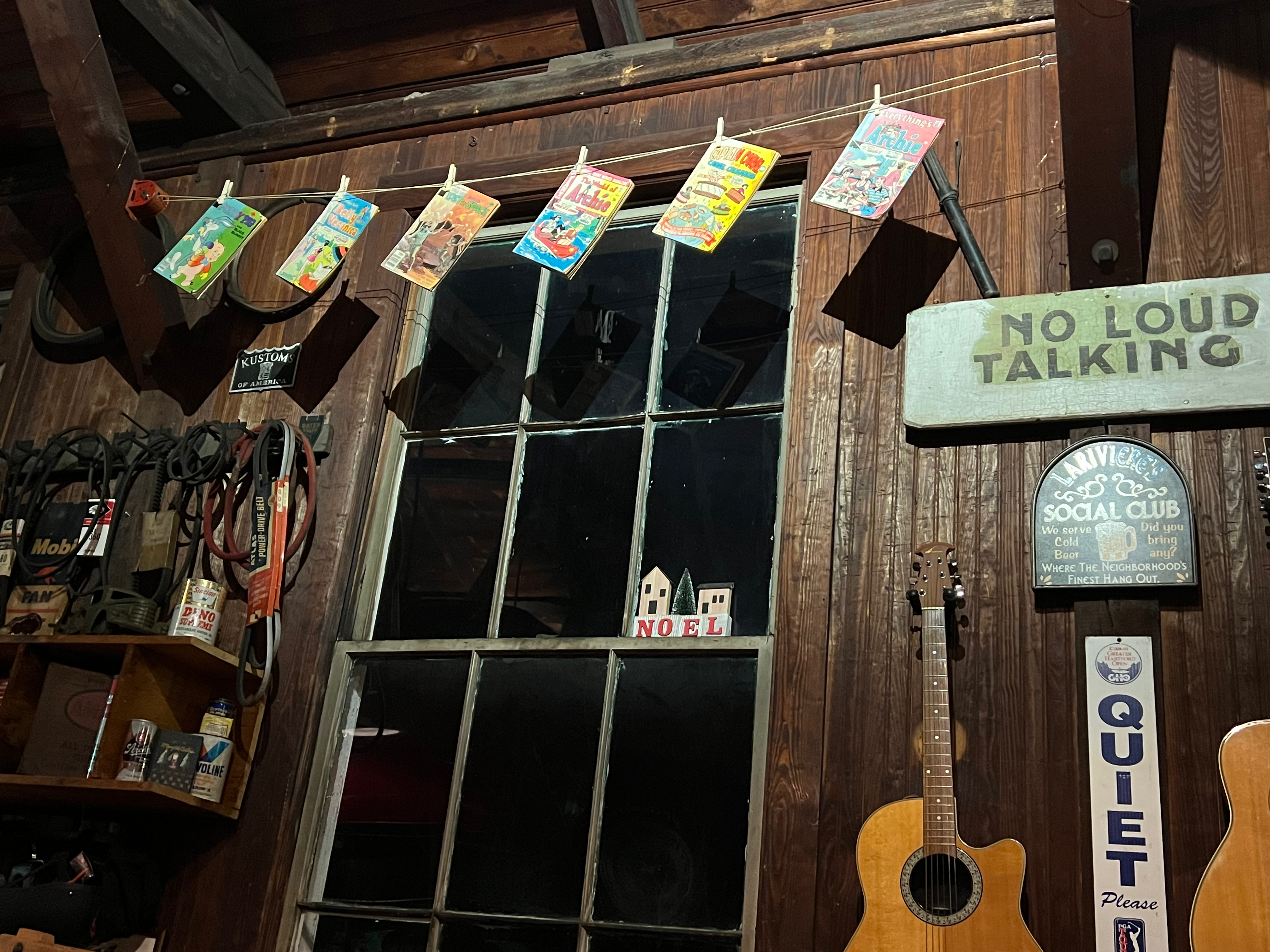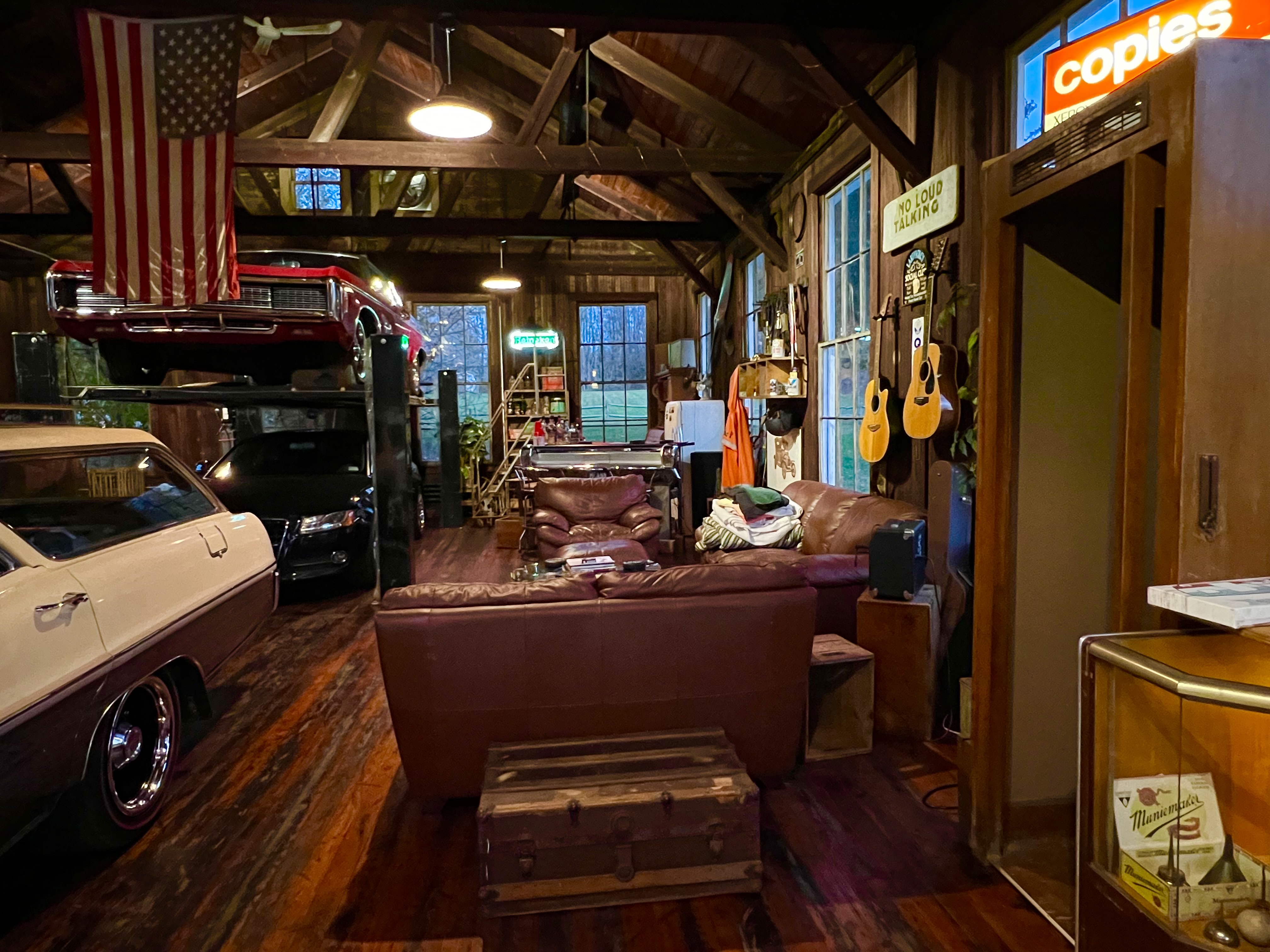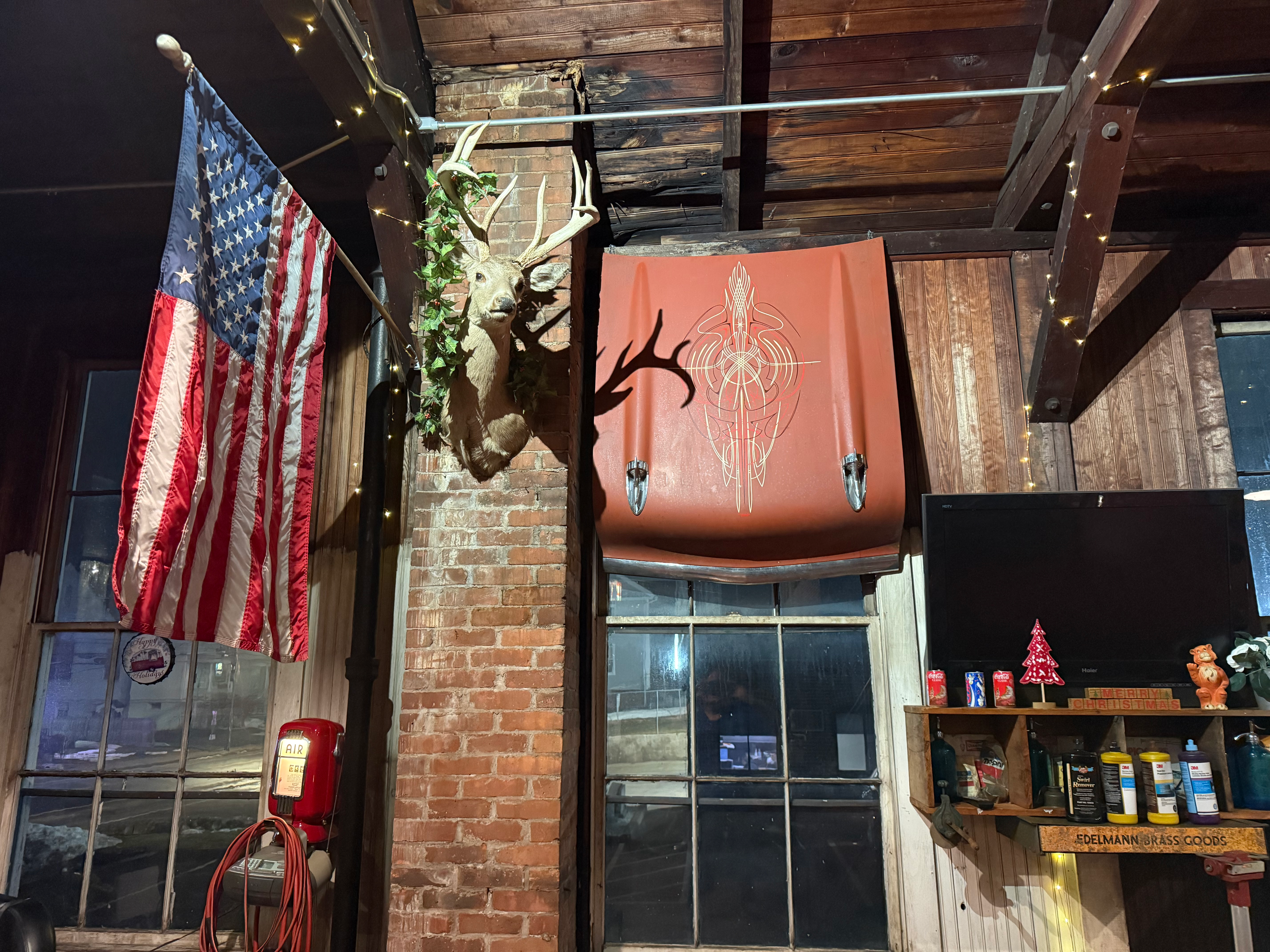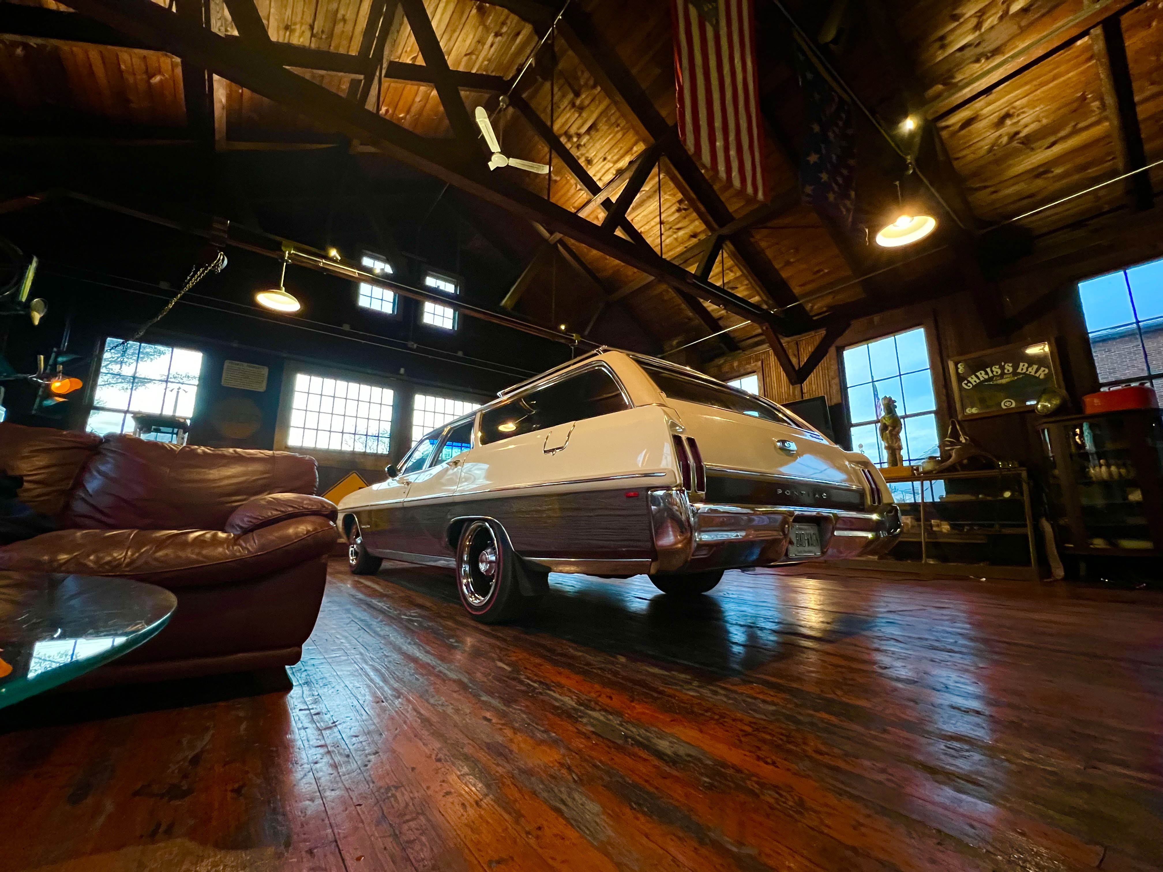 Thanks to some very generous, and widely talented friends, the necessary repairs began. Cleaning the walls, restoring the hardwood floors, and replacing pane after pane of broken 100-year-old glass. Then came storing classic cars inside like honored guests instead of forgotten relics, and cruise nights, happy hours, live music, and ‘The Wedding’, complete with hotrods and vintage campers, and the annual Christmas party, held the same night as the village’s torchlight parade, flooding the garage with people, music, and headlights in the cold.