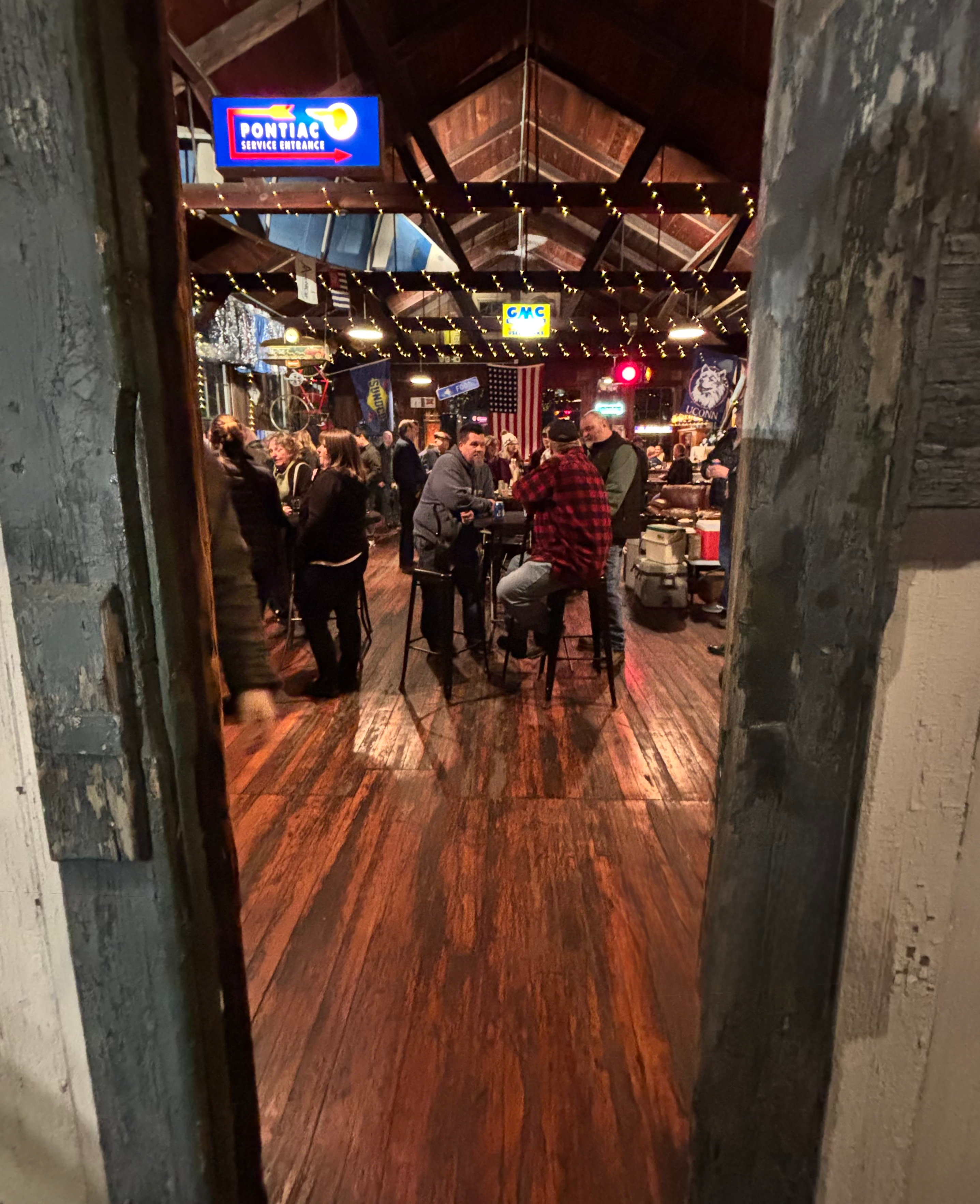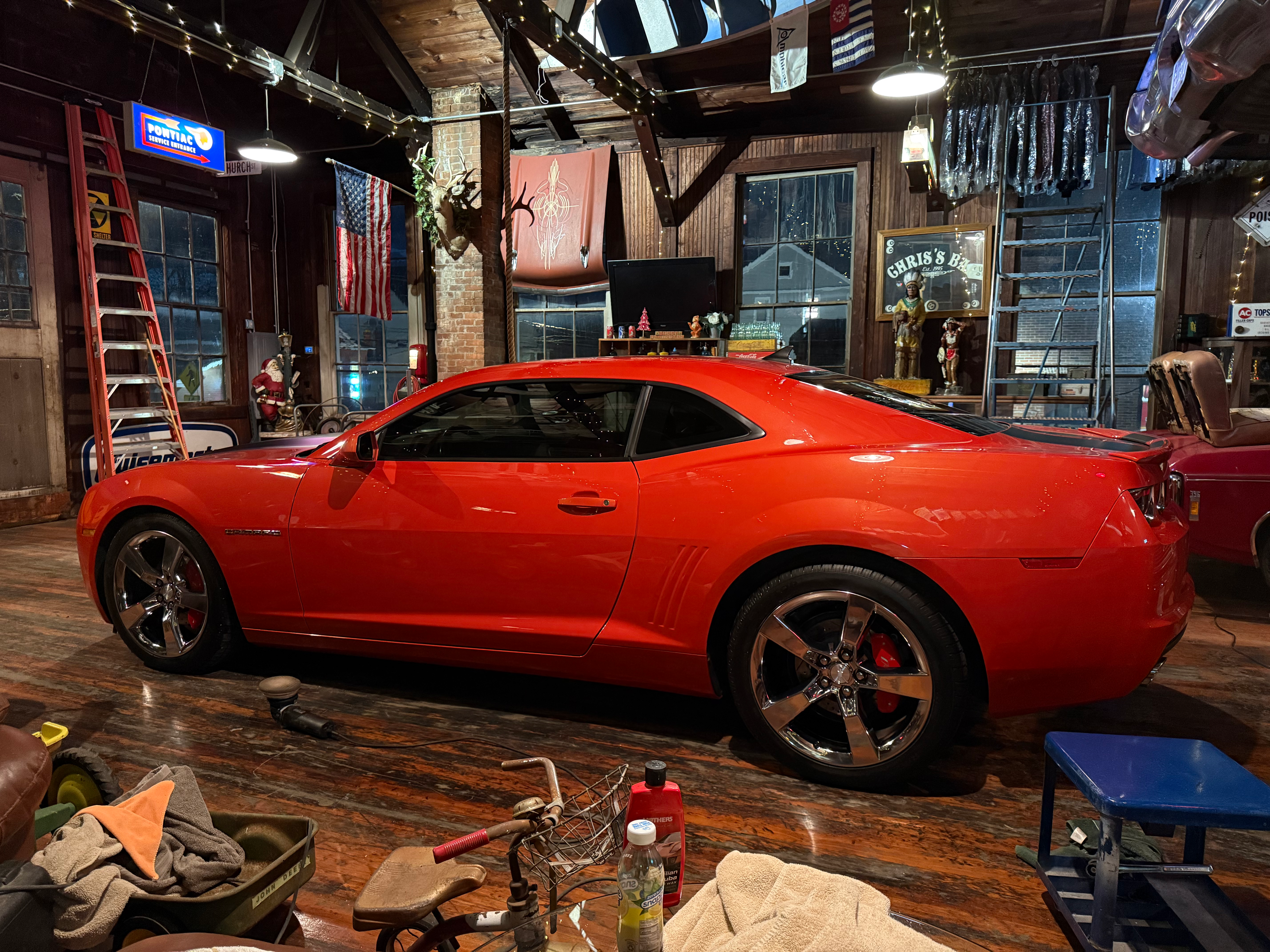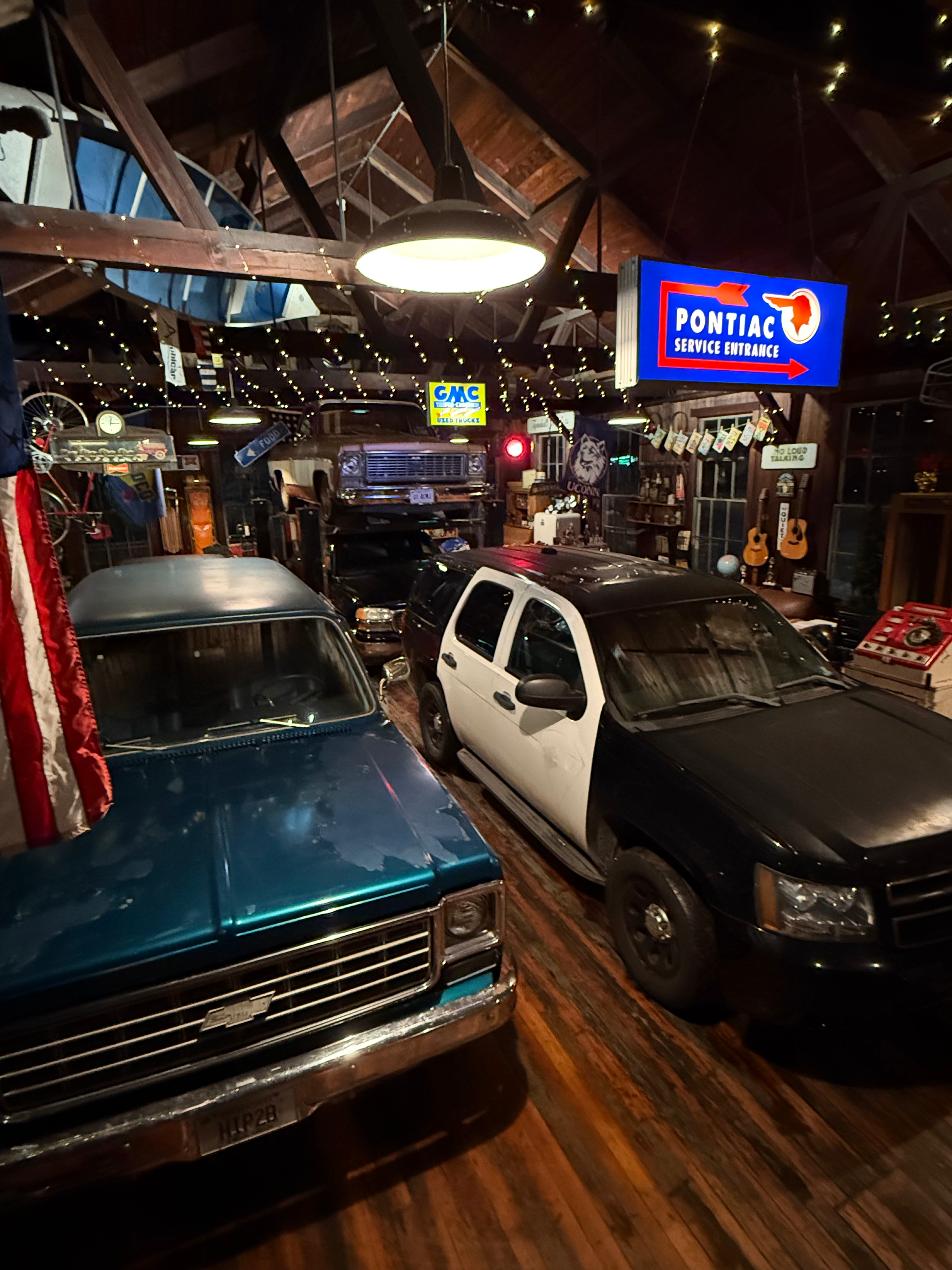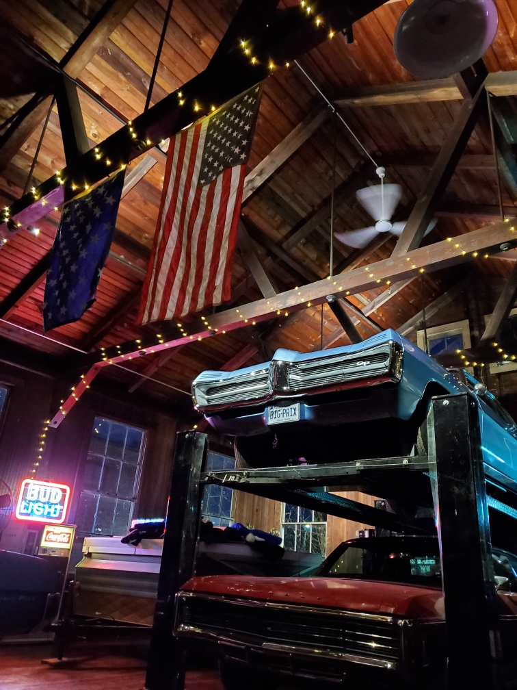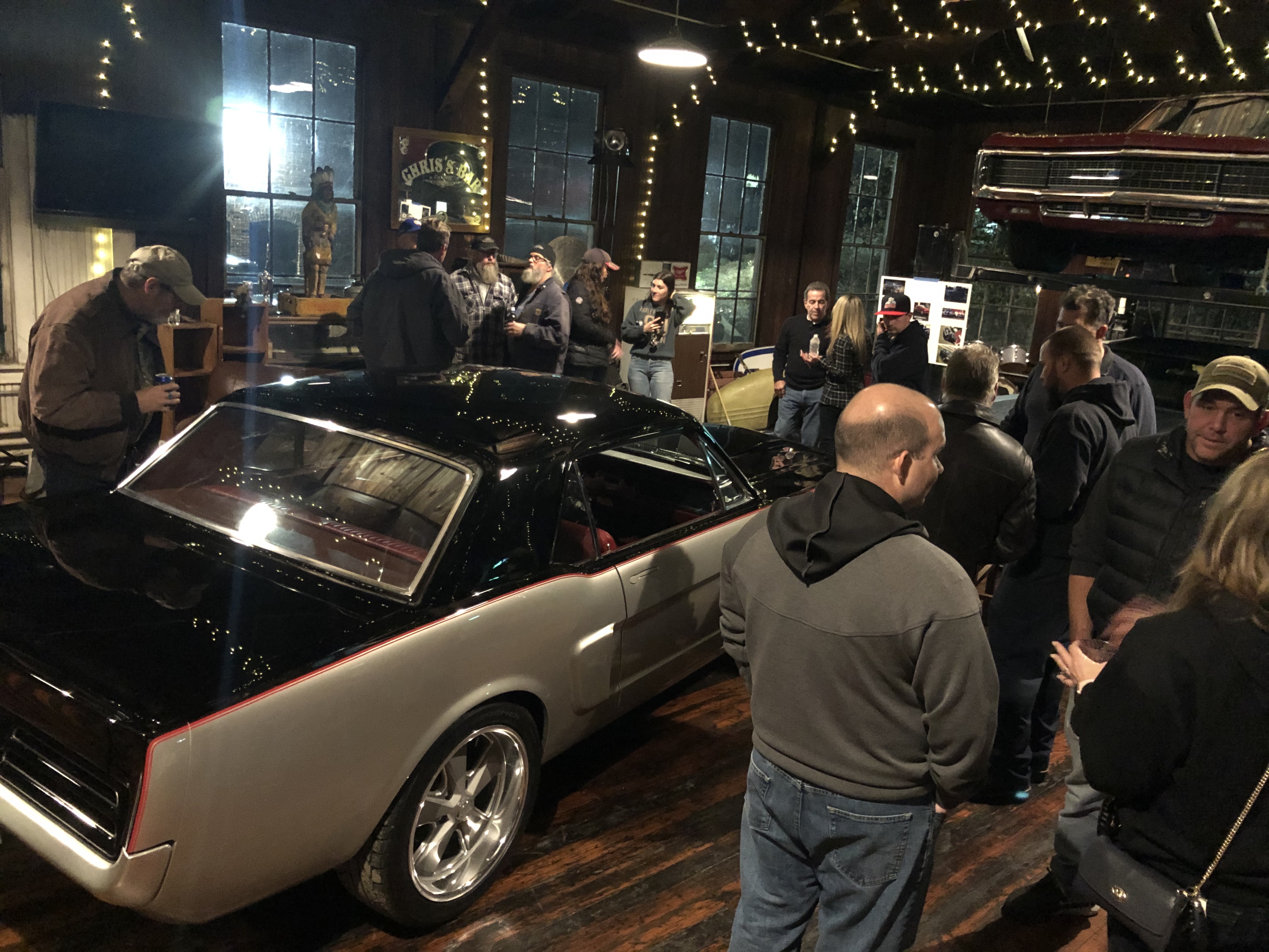 Thanks to some very generous, and widely talented friends, the necessary repairs began. Cleaning the walls, restoring the hardwood floors, and replacing pane after pane of broken 100-year-old glass. Then came storing classic cars inside like honored guests instead of forgotten relics, and cruise nights, happy hours, live music, and ‘The Wedding’, complete with hotrods and vintage campers, and the annual Christmas party, held the same night as the village’s torchlight parade, flooding the garage with people, music, and headlights in the cold.
