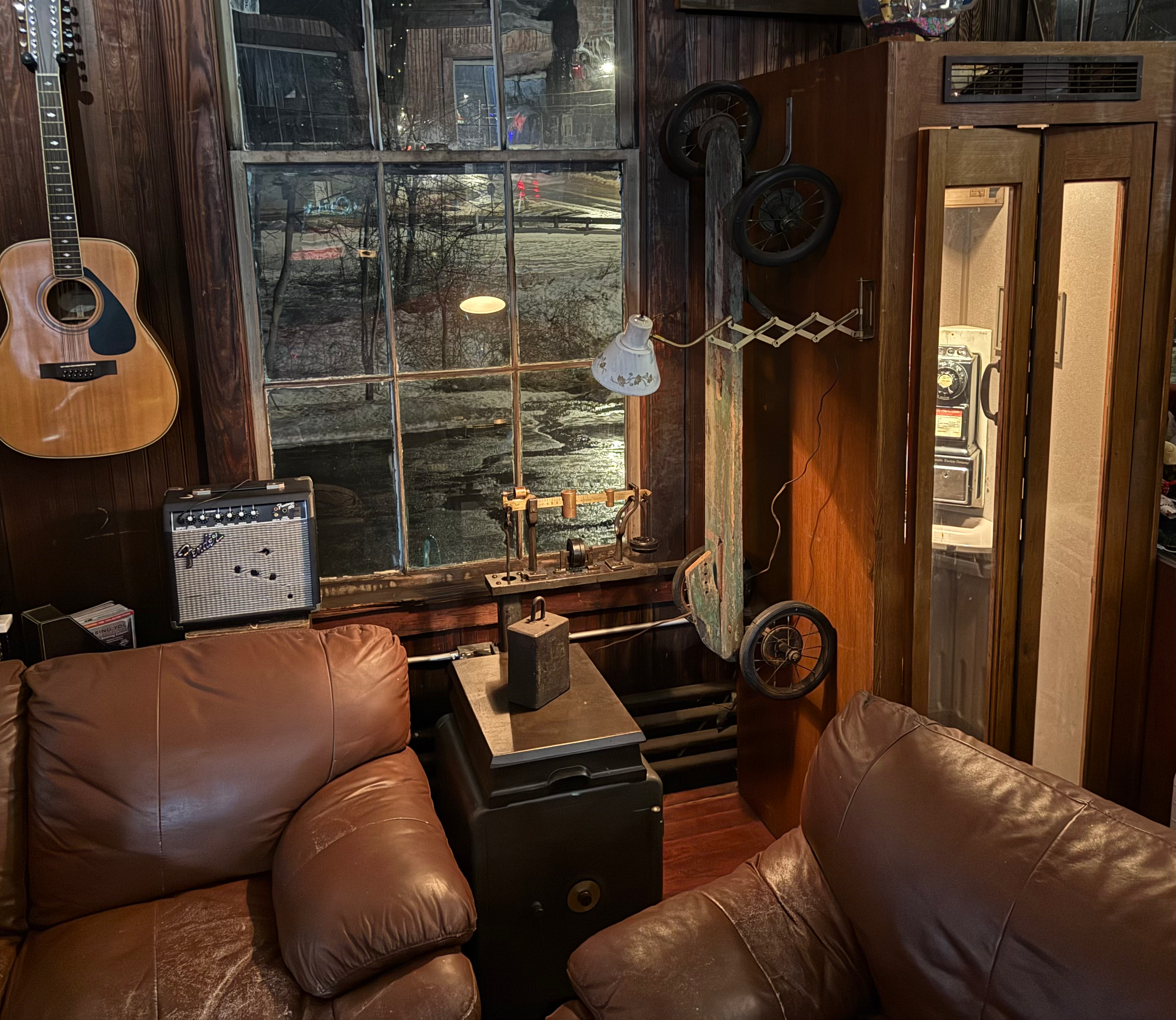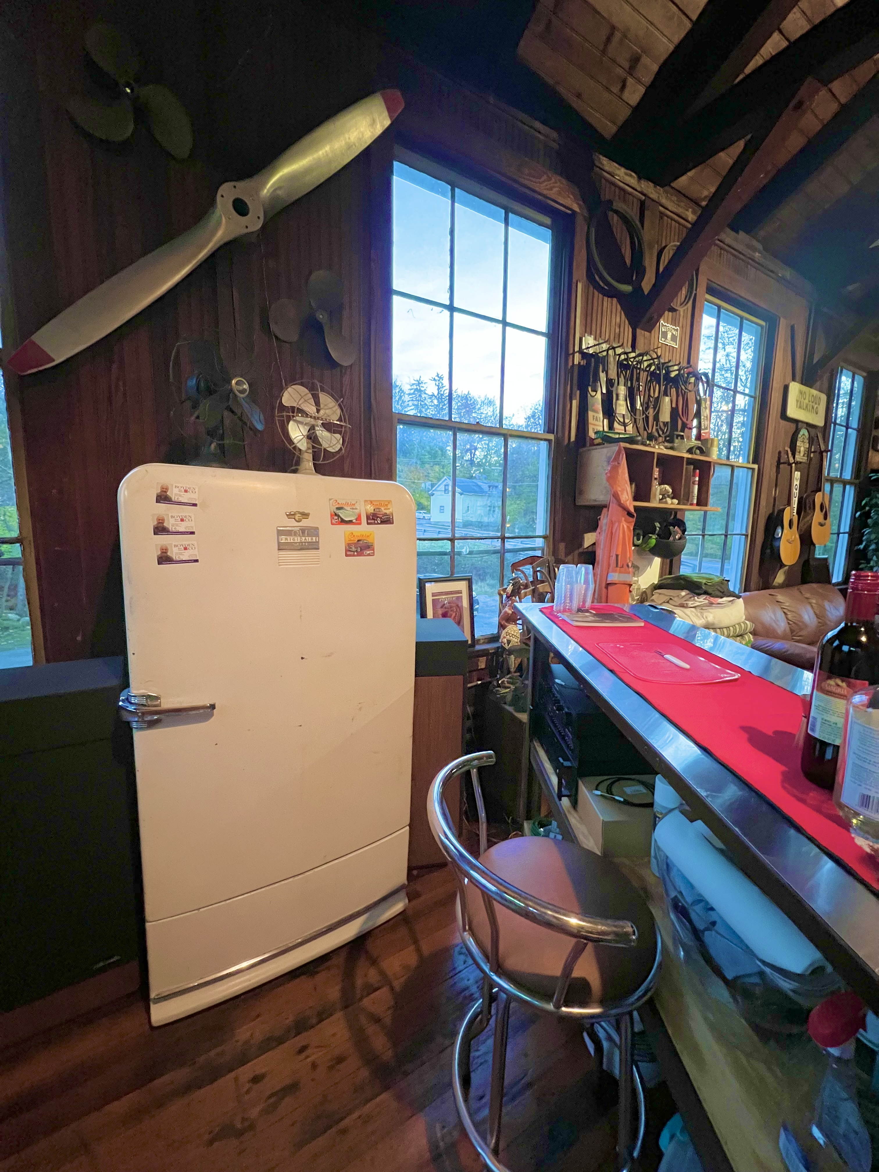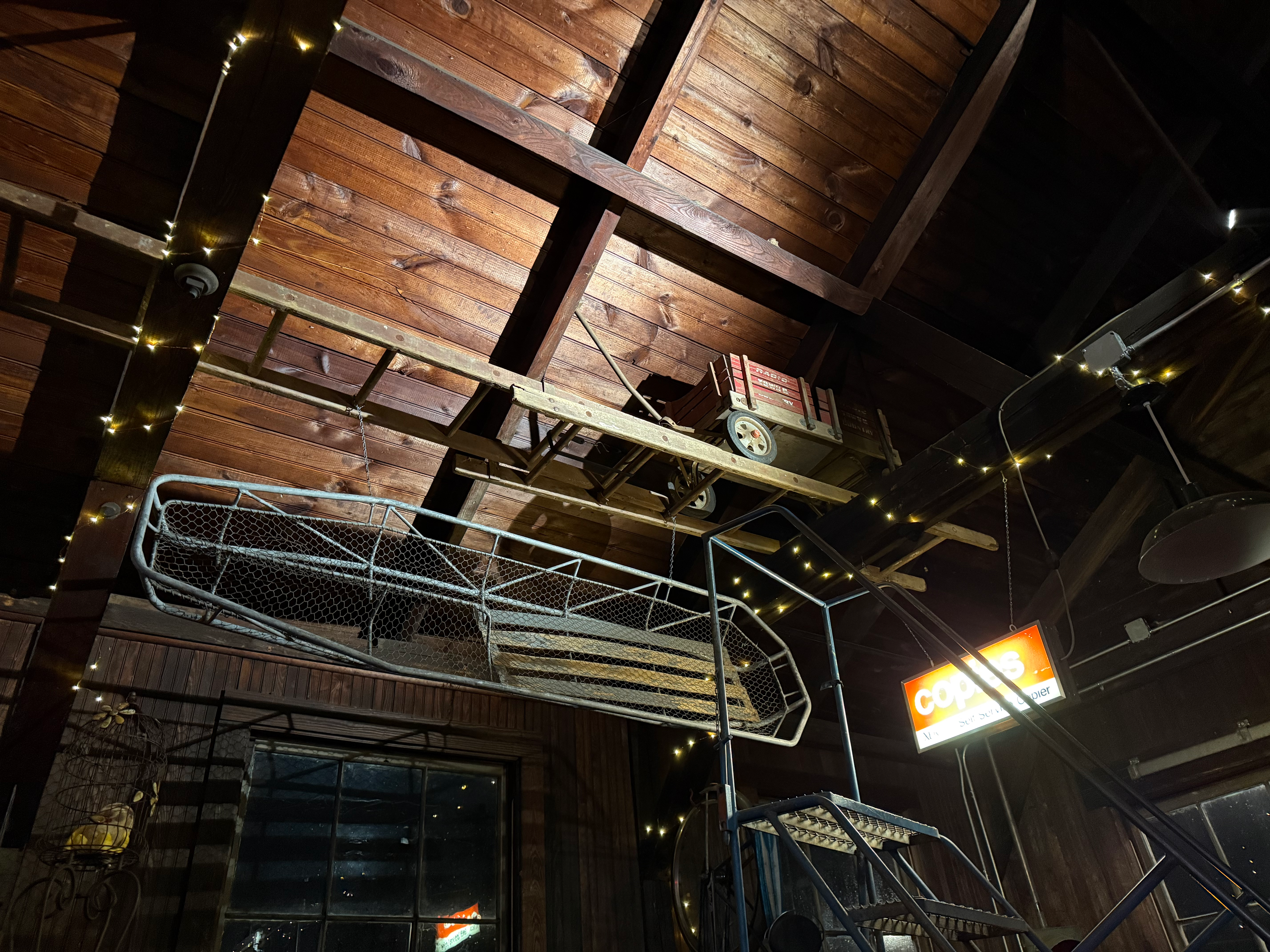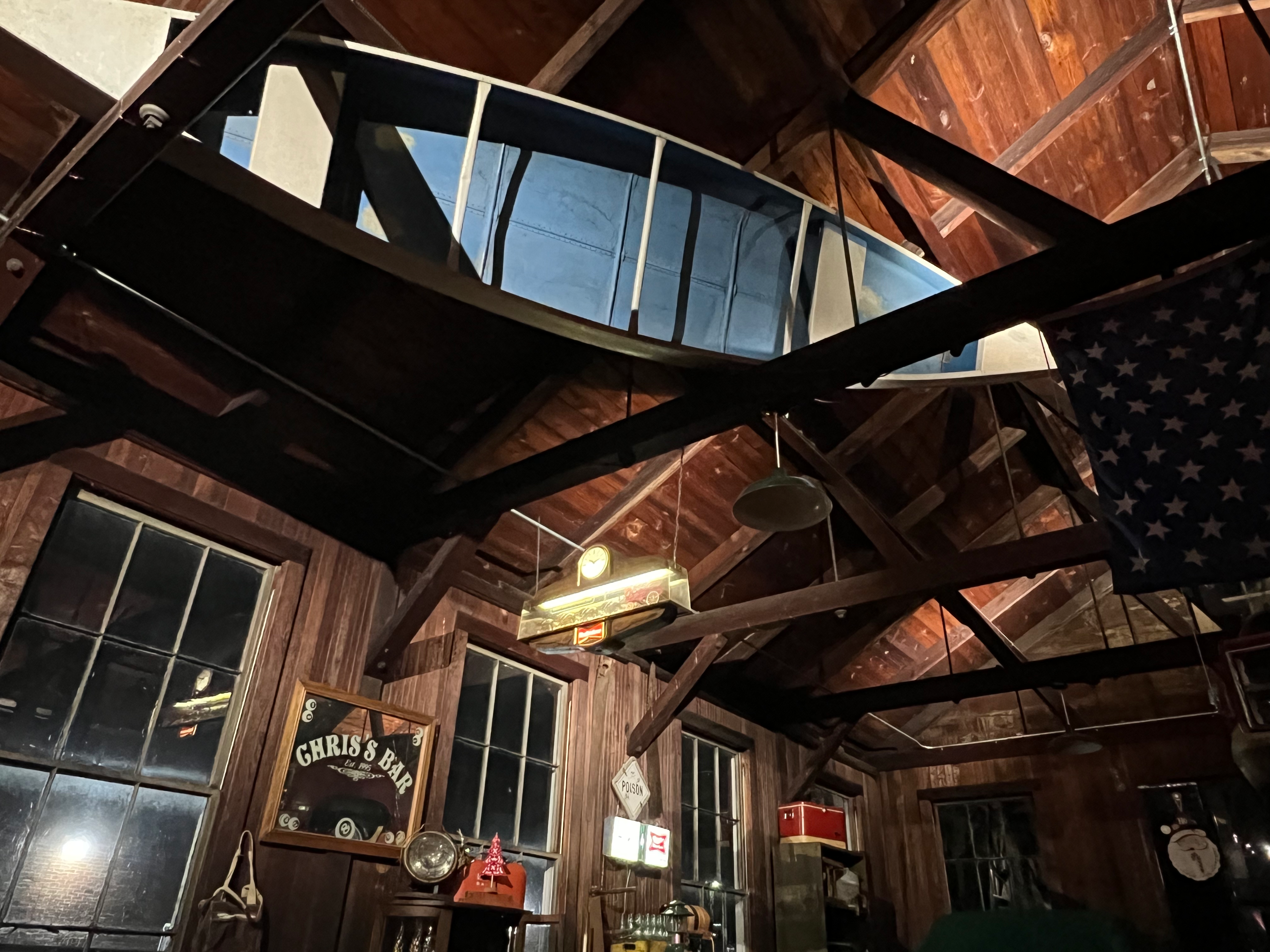 Thanks to some very generous, and widely talented friends, the necessary repairs began. Cleaning the walls, restoring the hardwood floors, and replacing pane after pane of broken 100-year-old glass. Then came storing classic cars inside like honored guests instead of forgotten relics, and cruise nights, happy hours, live music, and ‘The Wedding’, complete with hotrods and vintage campers, and the annual Christmas party, held the same night as the village’s torchlight parade, flooding the garage with people, music, and headlights in the cold.