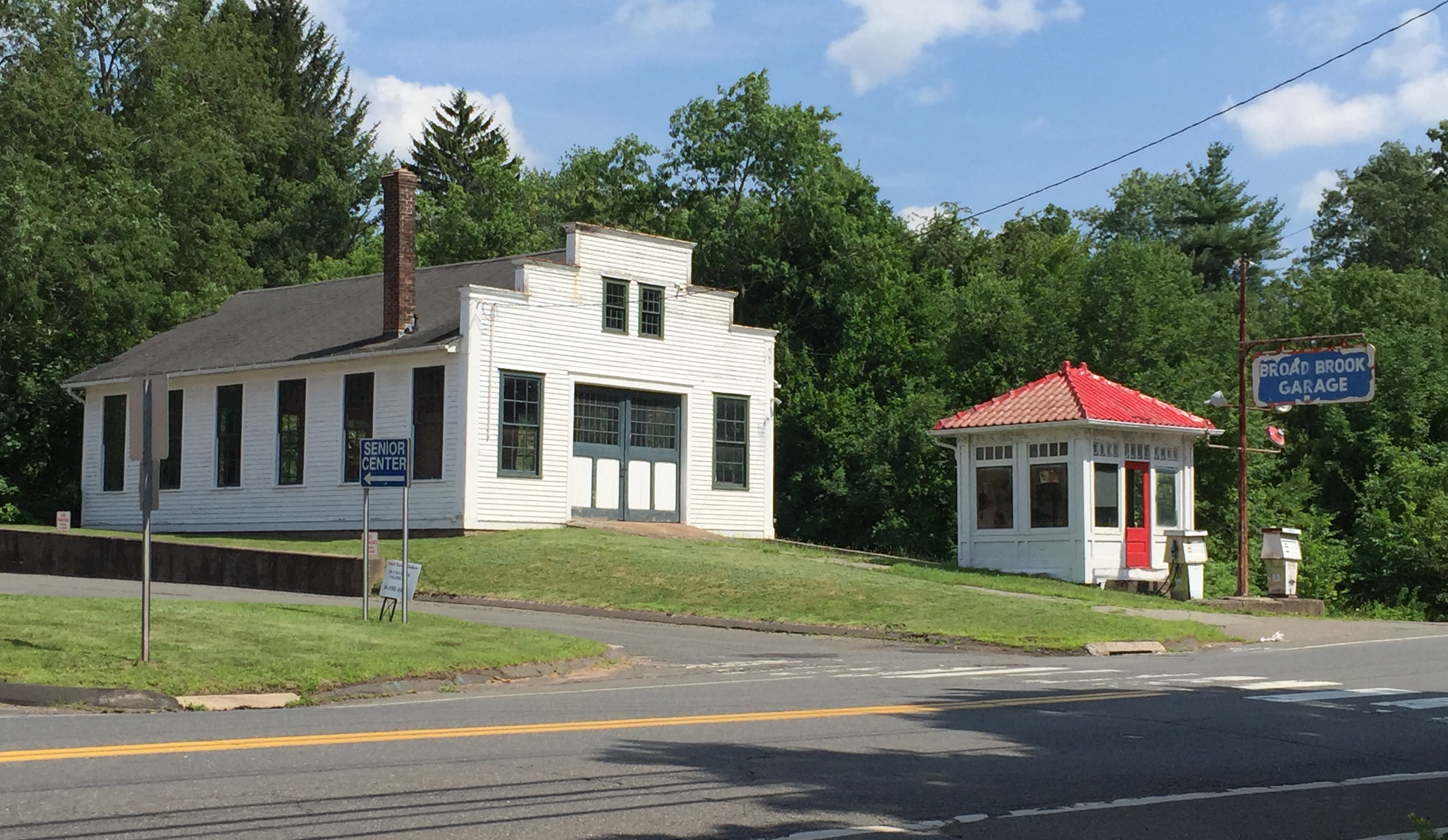 Broad Brook was the classic Connecticut mill village. The Broad Brook Company—famous for woolen goods and later automobile upholstery fabrics—powered the local economy through the early and mid-20th century. When the auto industry pivoted to vinyl in the 1950s, the mill faltered, reshaping the neighborhood around it. The garage witnessed that entire arc from its corner.